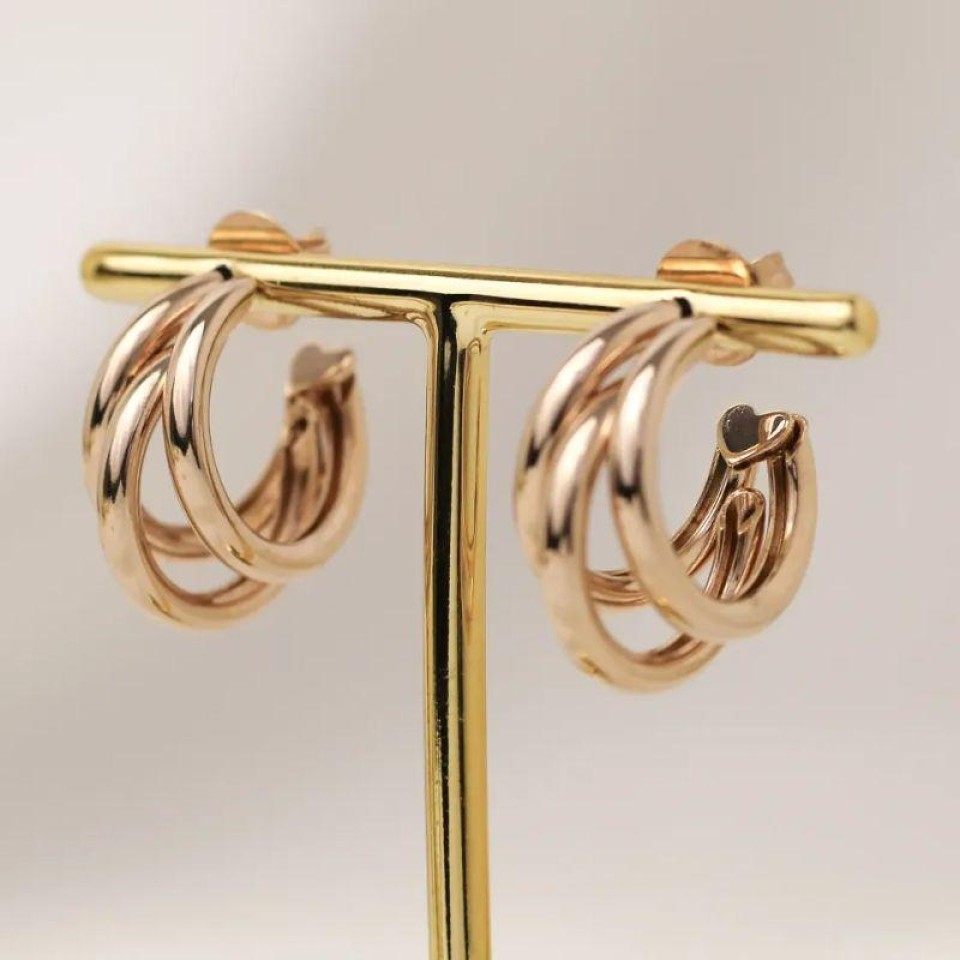 BRINCO ARGOLA TUBULAR TRIPLA M BANHO ROSÉ