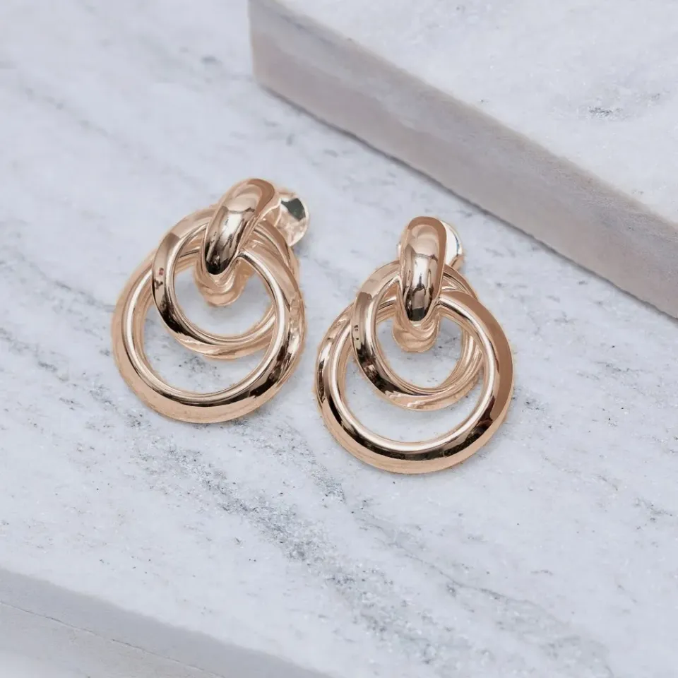 Brinco Argola Tripla Lisa M em banho Rosé