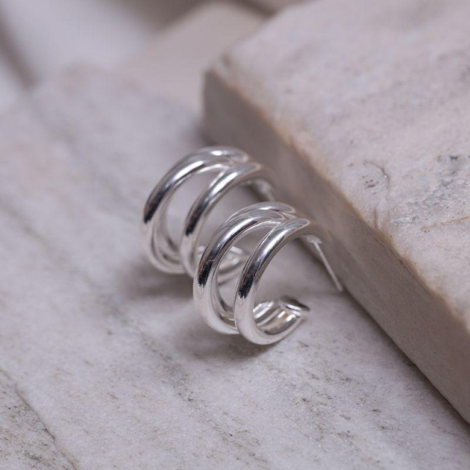 Brinco Argola Tubular Tripla P em banho Prata