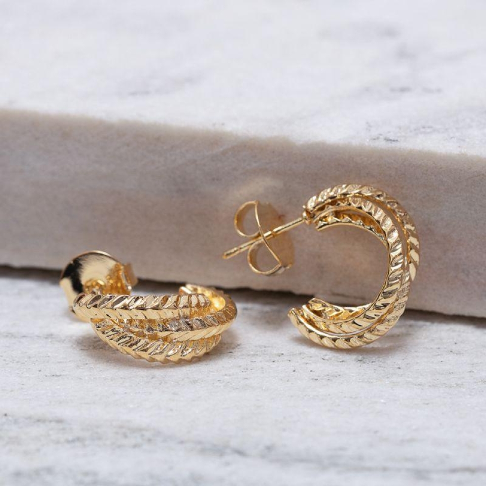Brinco Argola Tripla Trabalhada em banho Ouro 18K