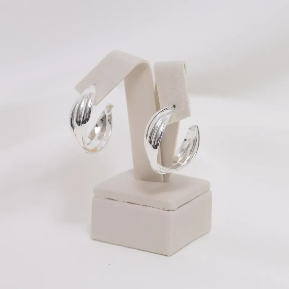 BRINCO ARGOLA TRIPLA TRANÇADA BANHO PRATA