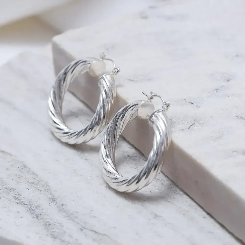 Brinco Argola Torcida Tubinho Fecho Joia em banho Prata
