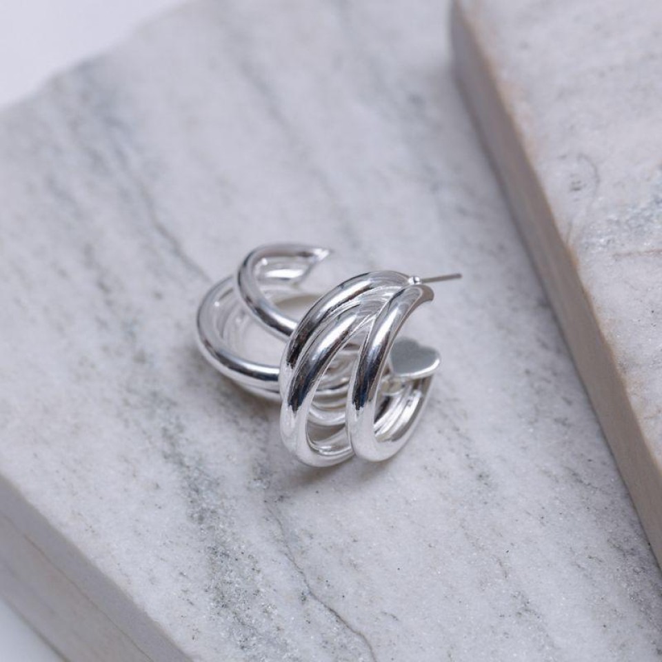 BRINCO ARGOLA TUBULAR TRIPLA M BANHO PRATA