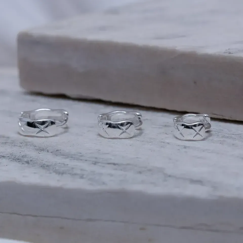Brinco Argola Lisa com X Trio G em banho Prata