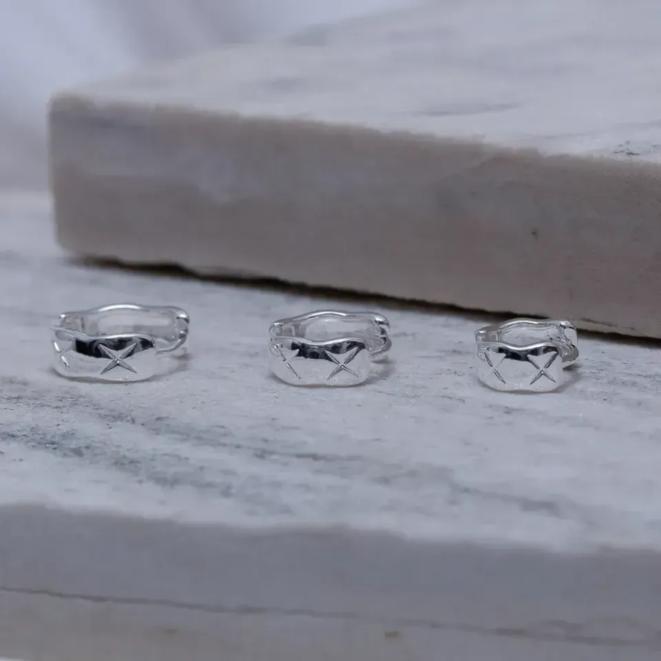 Brinco Argola Lisa com X Trio M em banho Prata