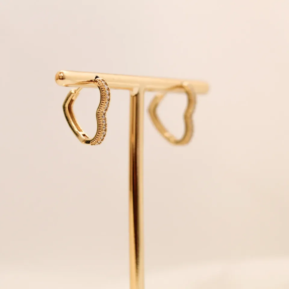 BRINCO ARGOLA ZIRCÔNIA CORAÇÃO G BANHO OURO 18K