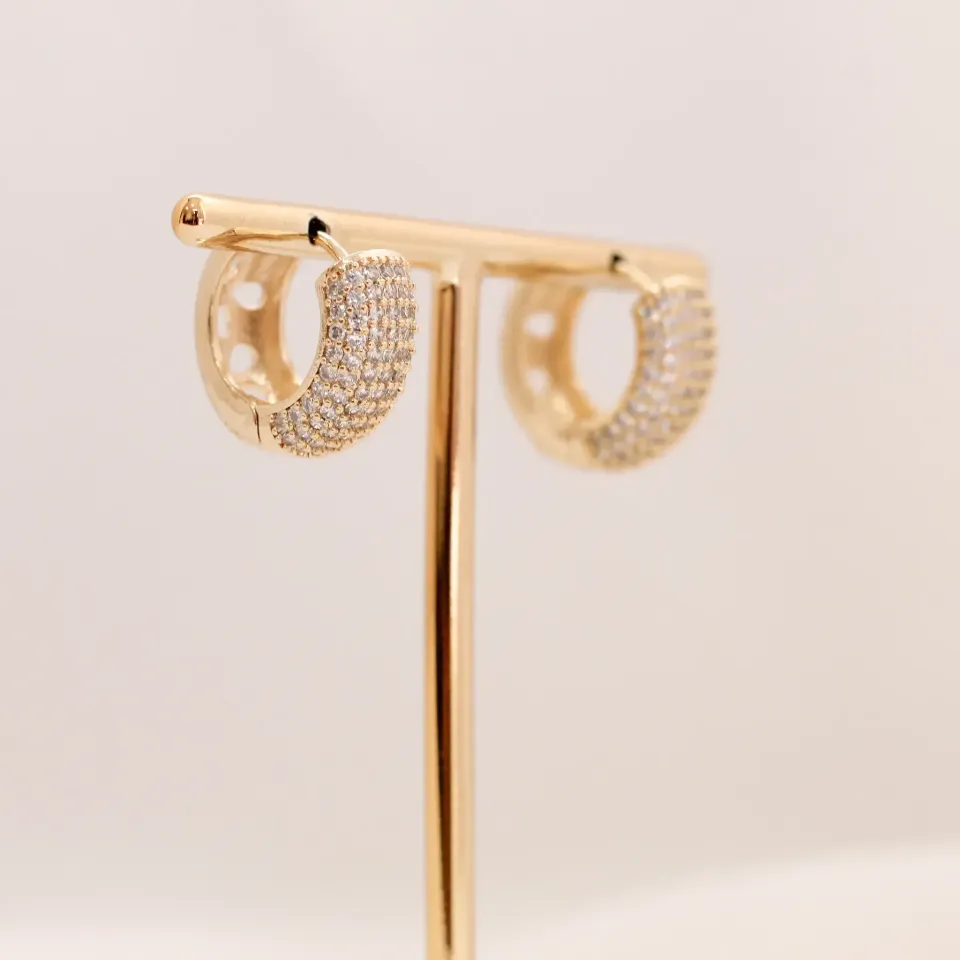 BRINCO ARGOLA CRAVEJADA COM ZIRCÔNIAS CRISTAIS G BANHO OURO 18K