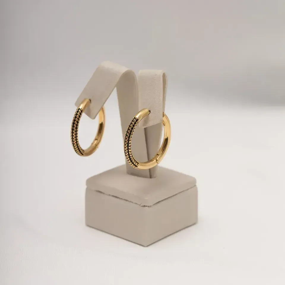 Brinco Argola com Zircônias Negras em banho Ouro 18K
