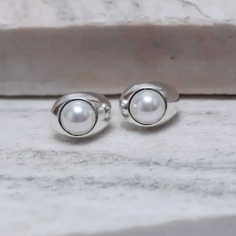 BRINCO ARGOLINHA COM PÉROLA BANHO PRATA