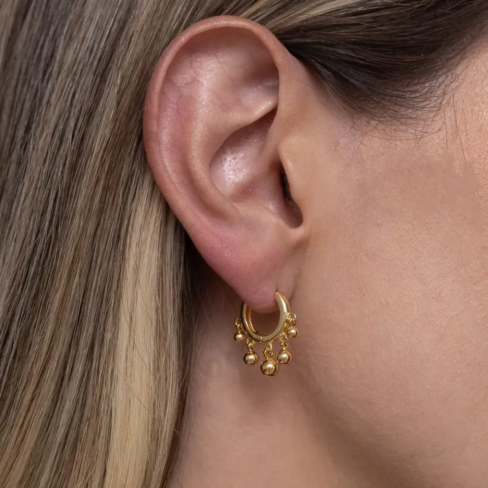 BRINCO ARGOLINHA COM PINGENTES DE BOLINHAS BANHO OURO 18K