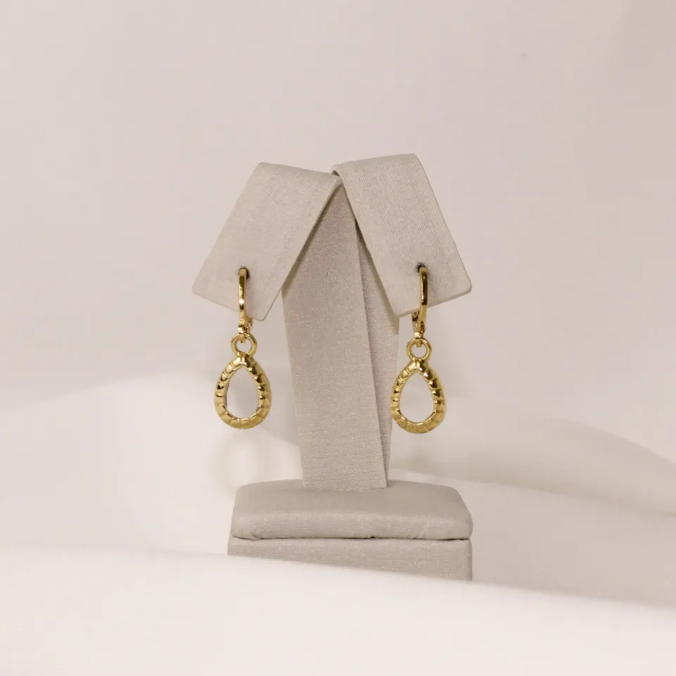 BRINCO ARGOLINHA PINGENTE GOTA VAZADA BANHO OURO 18K