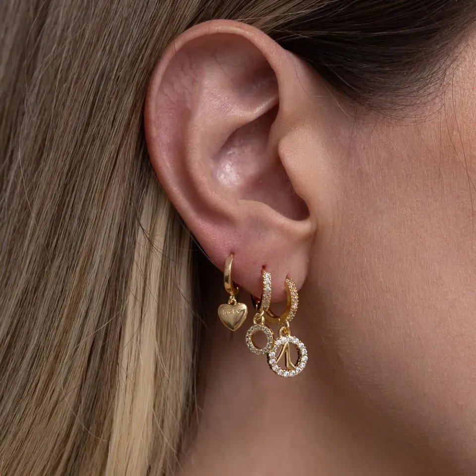 BRINCO ARGOLINHA PINGENTE REDONDO COM ZIRCÔNIA BANHO OURO 18K