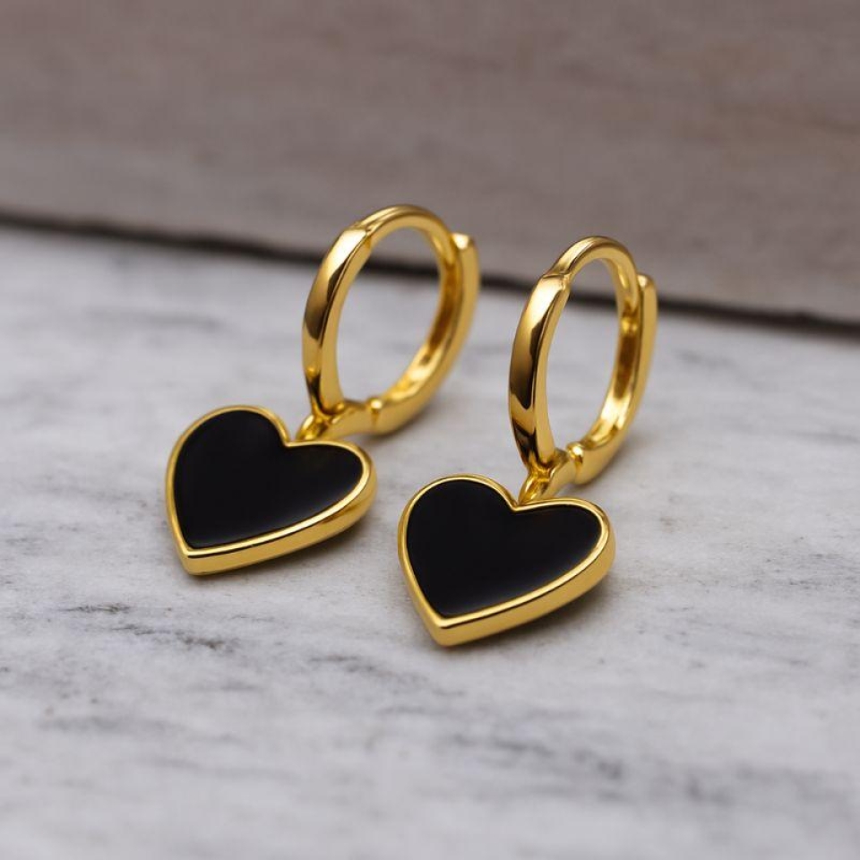 BRINCO ARGOLINHA RESINA CORAÇÃO PRETO