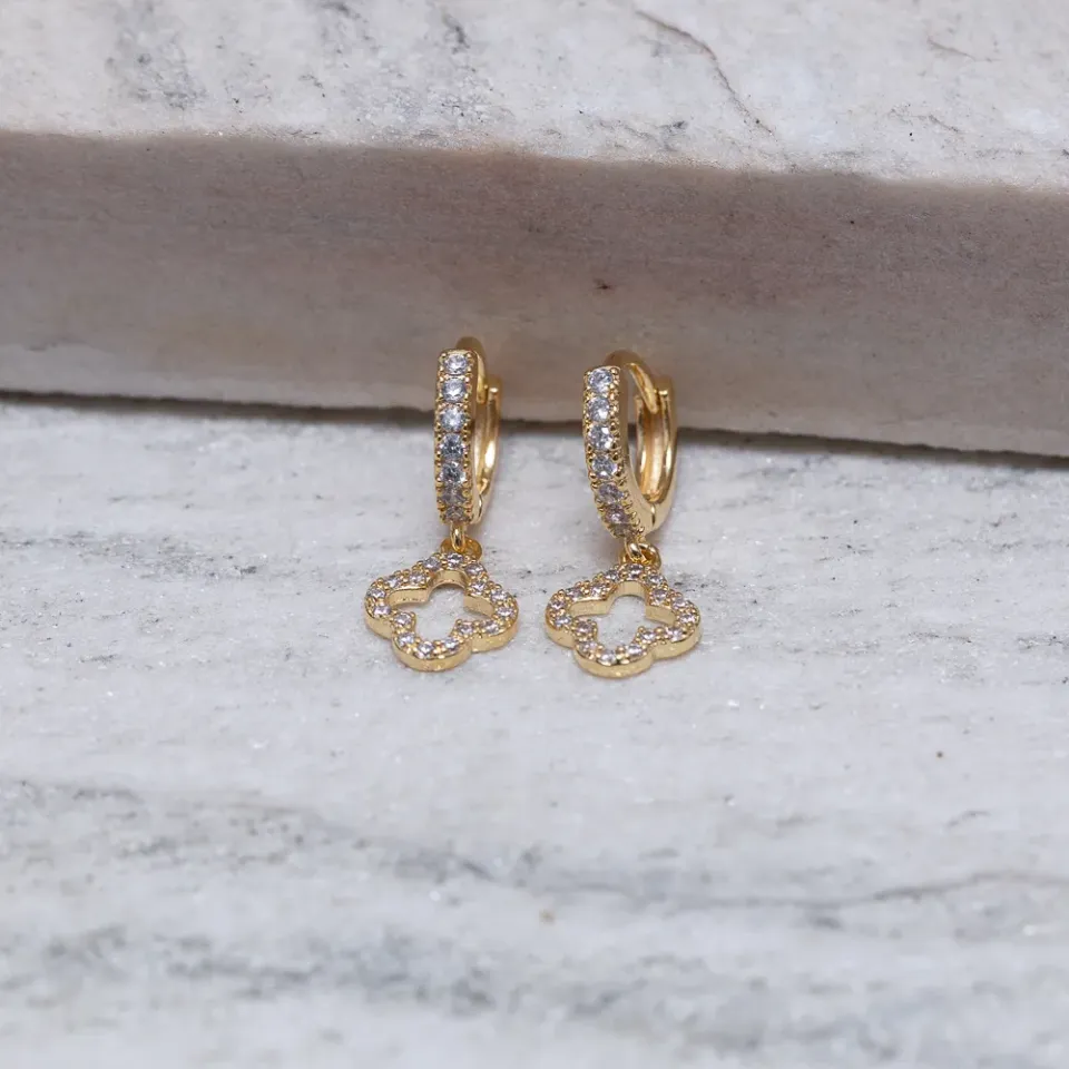 BRINCO ARGOLINHA VIRGINIA VAZADA CRAVEJADA BANHO OURO 18K