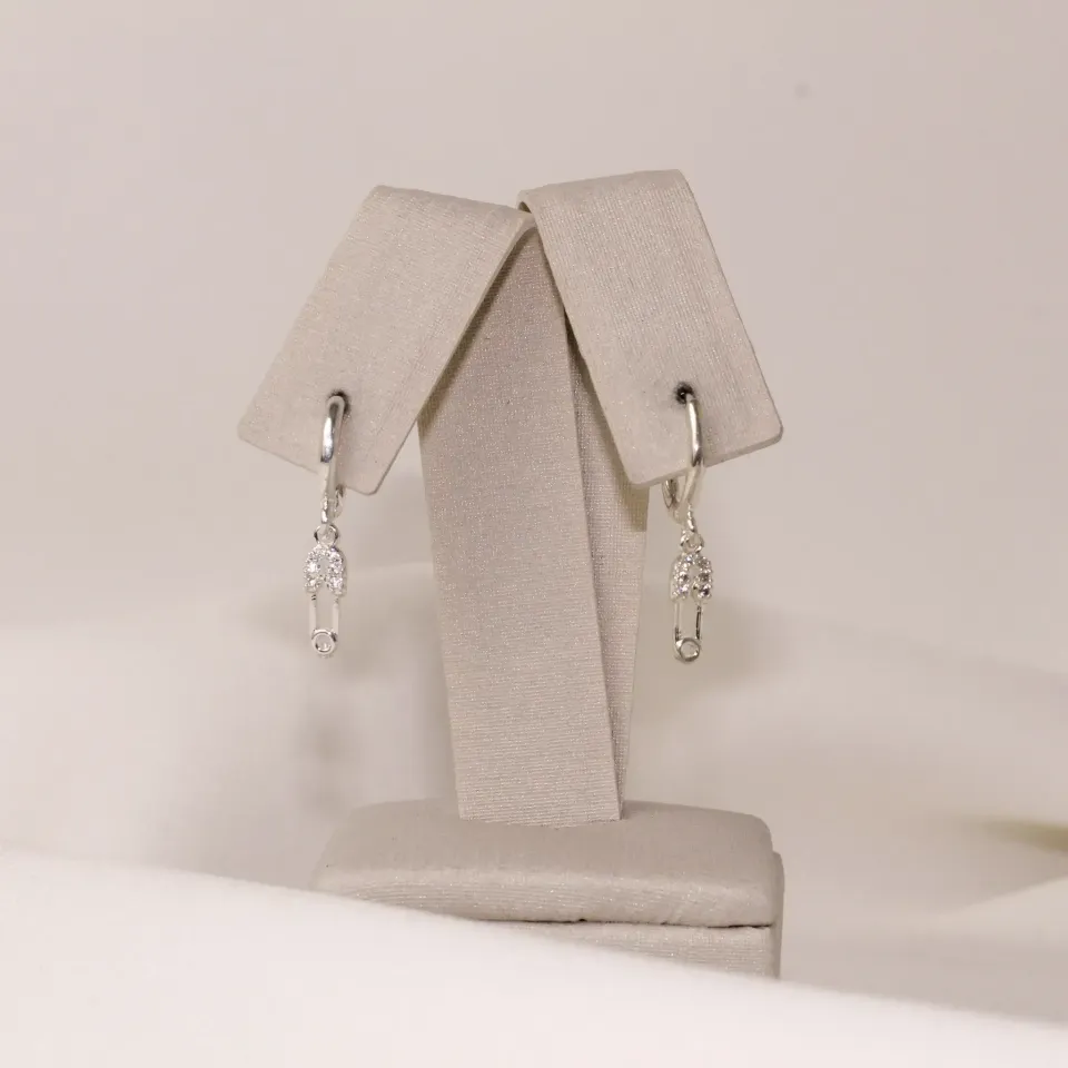 BRINCO ARGOLINHA COM ZIRCÔNIA E PINGENTE ALFINETE BANHO PRATA