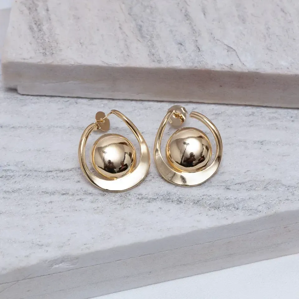 Brinco Aro com Esfera em banho Ouro 18K