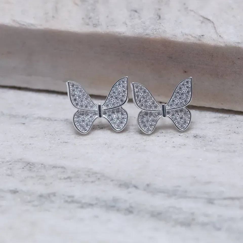 BRINCO BORBOLETA CRAVEJADA BANHO PRATA
