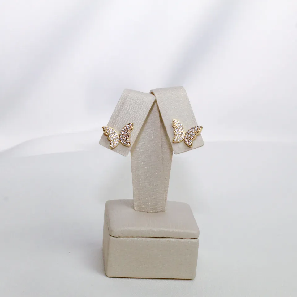 BRINCO BORBOLETA CRISTAL BANHO OURO 18K