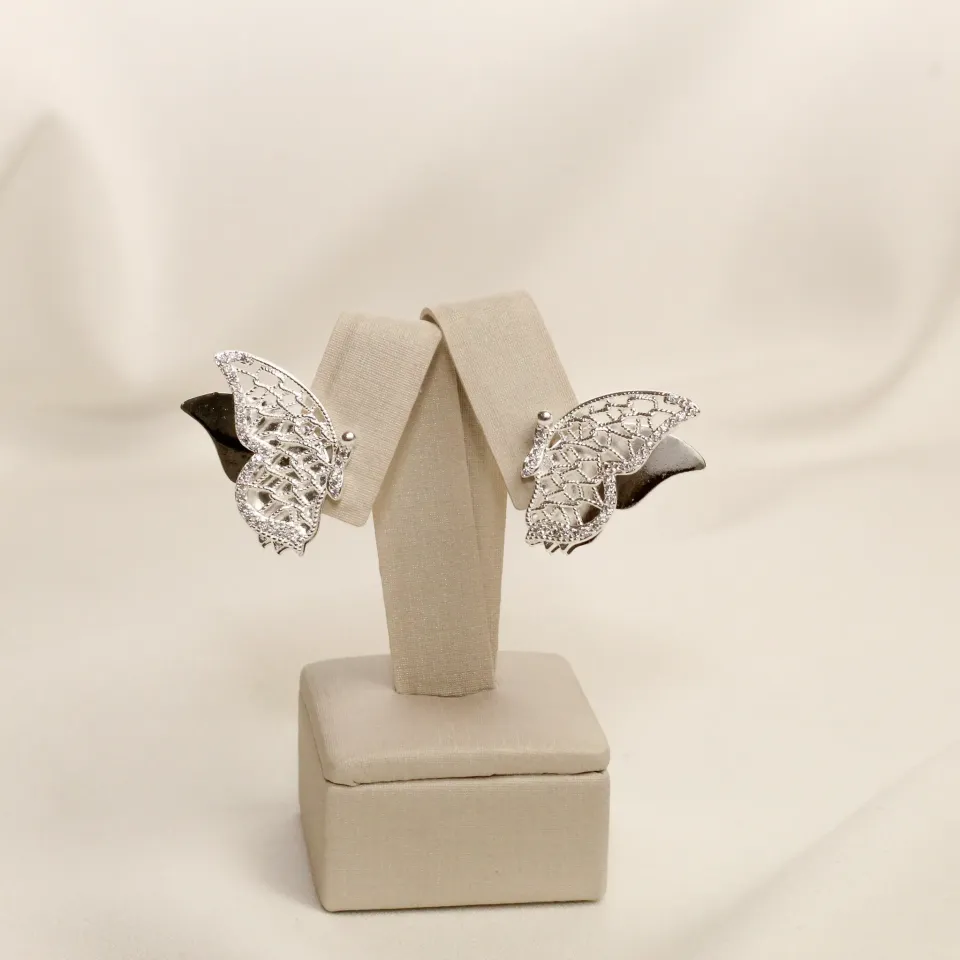 BRINCO BORBOLETA CRISTAL BANHO PRATA