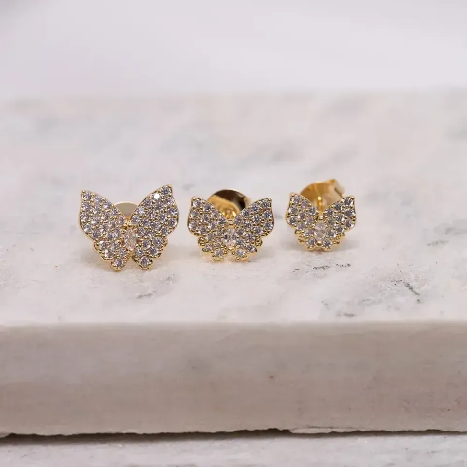 BRINCO BORBOLETA CRAVEJADO COM ZIRCÔNIAS CRISTAIS G BANHO OURO 18K