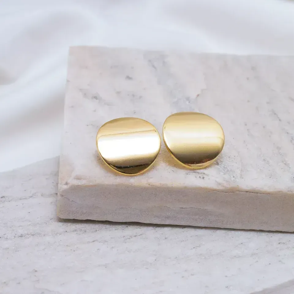 Brinco Botão Liso G em banho Ouro 18K