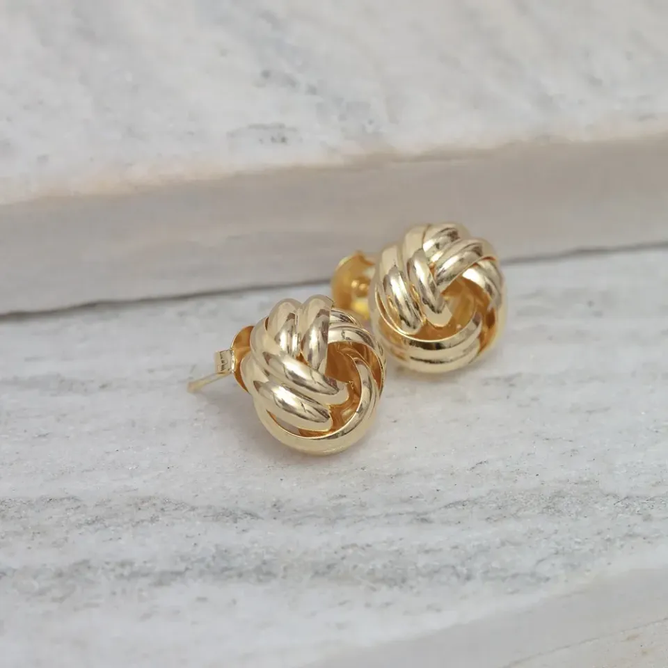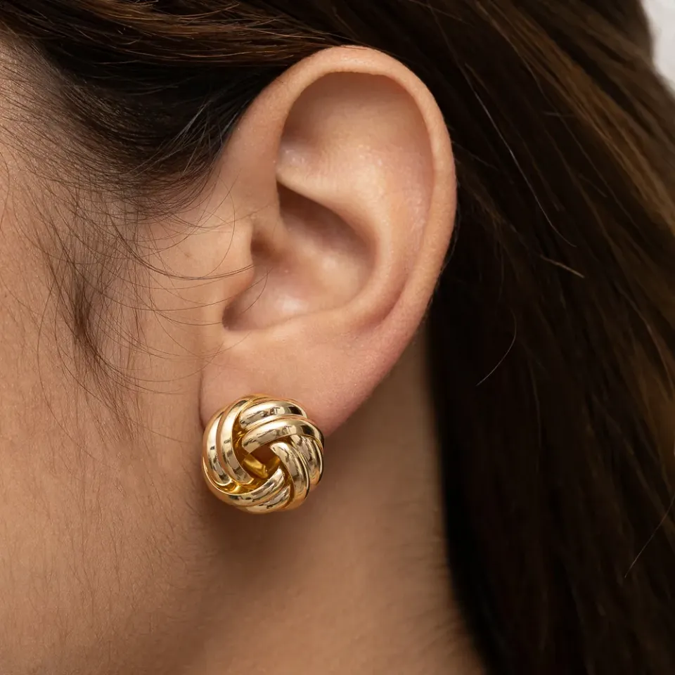 BRINCO BOTÃO LISO TORCIDO BANHO OURO 18K