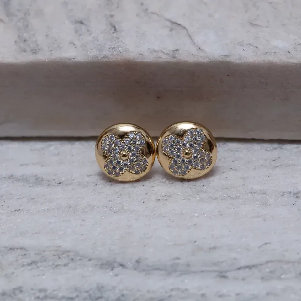 BRINCO BOTÃO VIRGINIA CRAVEJADO BANHO OURO 18K