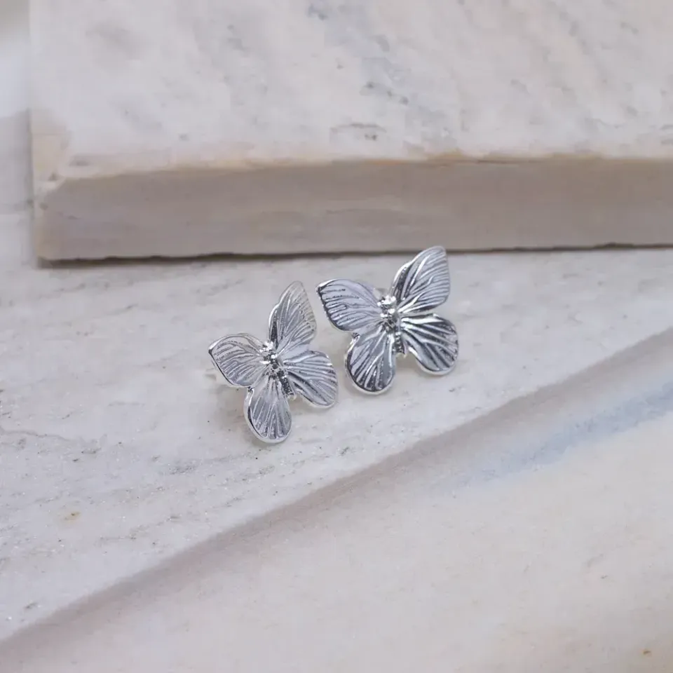 Brinco Borboleta Liso M em banho Prata