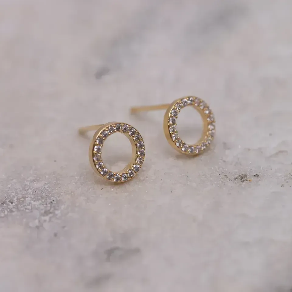 BRINCO CÍRCULO CRAVEJADO COM ZIRCÔNIAS CRISTAIS P BANHO OURO 18K