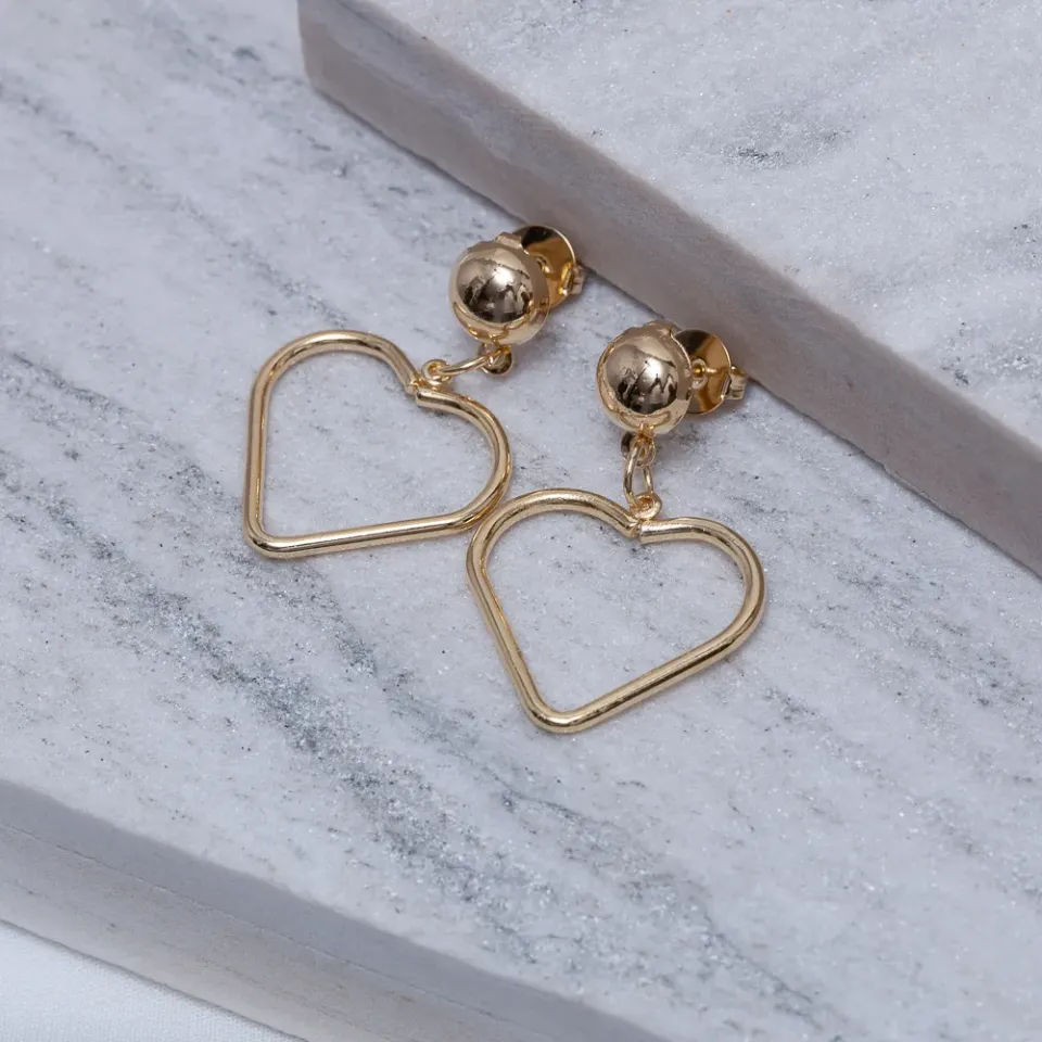 Brinco Coração com Base Redonda em banho Ouro 18K
