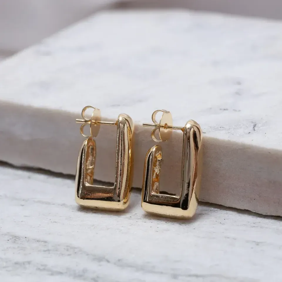 Brinco Argola Quadrada Abaulada em banho Ouro 18K