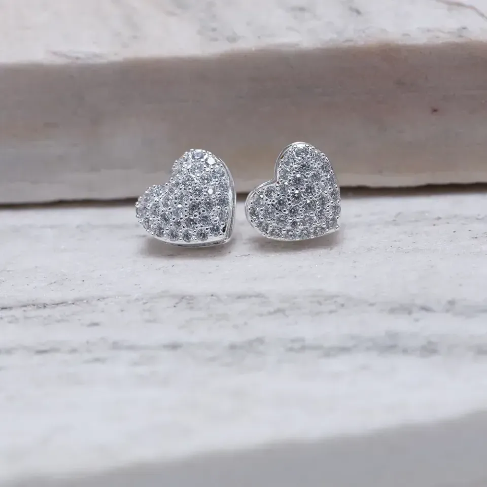 BRINCO CORAÇÃO CRAVEJADO BANHO PRATA