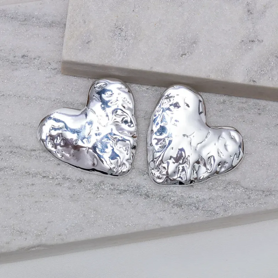 BRINCO CORAÇÃO MARTELADO BANHO PRATA