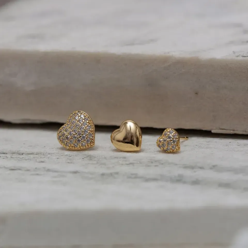 BRINCO CORAÇÃO P CRAVEJADO COM ZIRCÔNIAS BANHO OURO 18K
