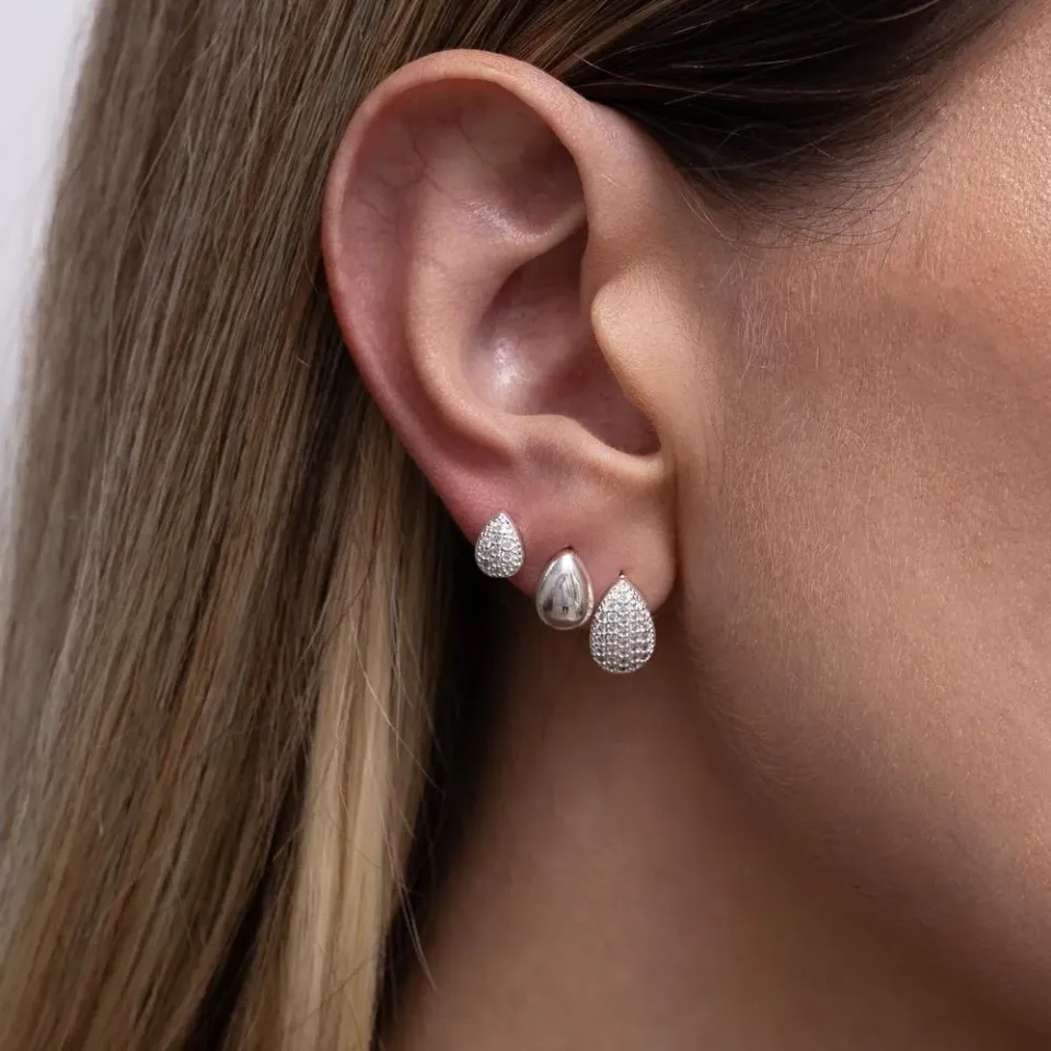 BRINCO GOTA P CRAVEJADO COM ZIRCÔNIAS BANHO PRATA