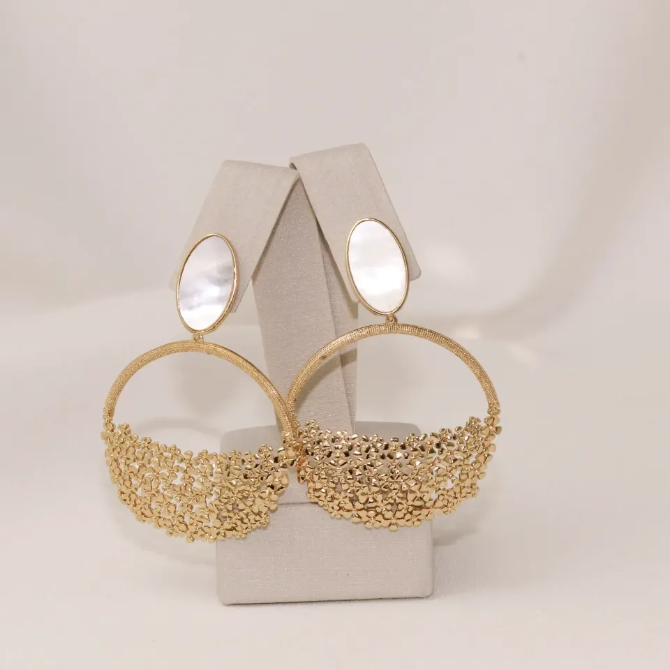 BRINCO RAQUEL COM MADRE PÉROLA BANHO OURO 18K
