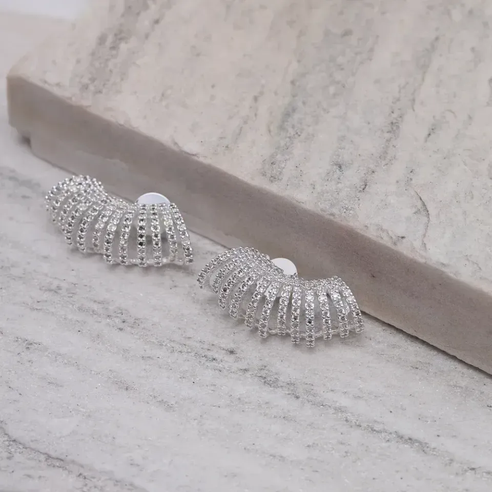BRINCO EAR CUFF CRAVEJADO COM ZIRCÔNIAS CRISTAIS BANHO PRATA