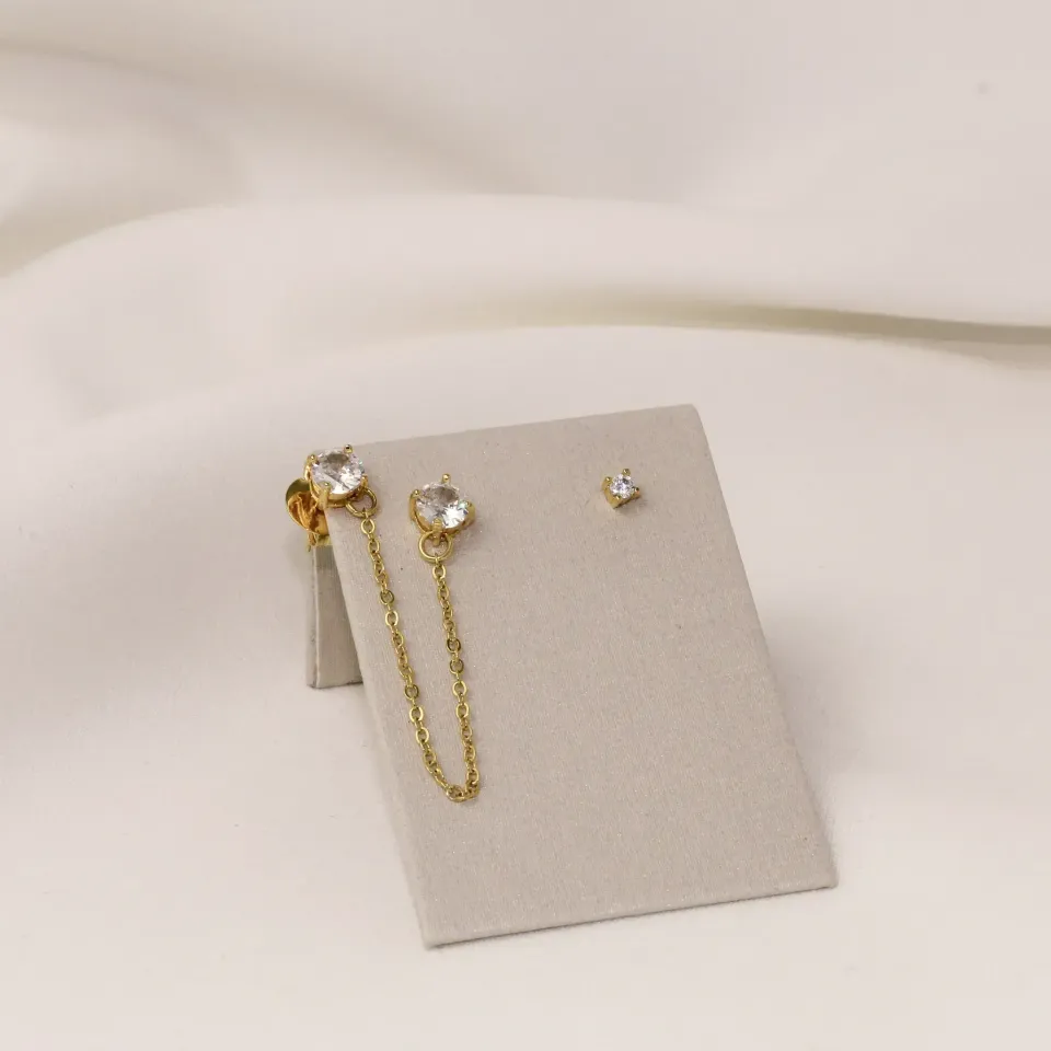 Brinco Ear Cuff com Corrente e Ponto de Luz Cristal em banho Ouro 18K