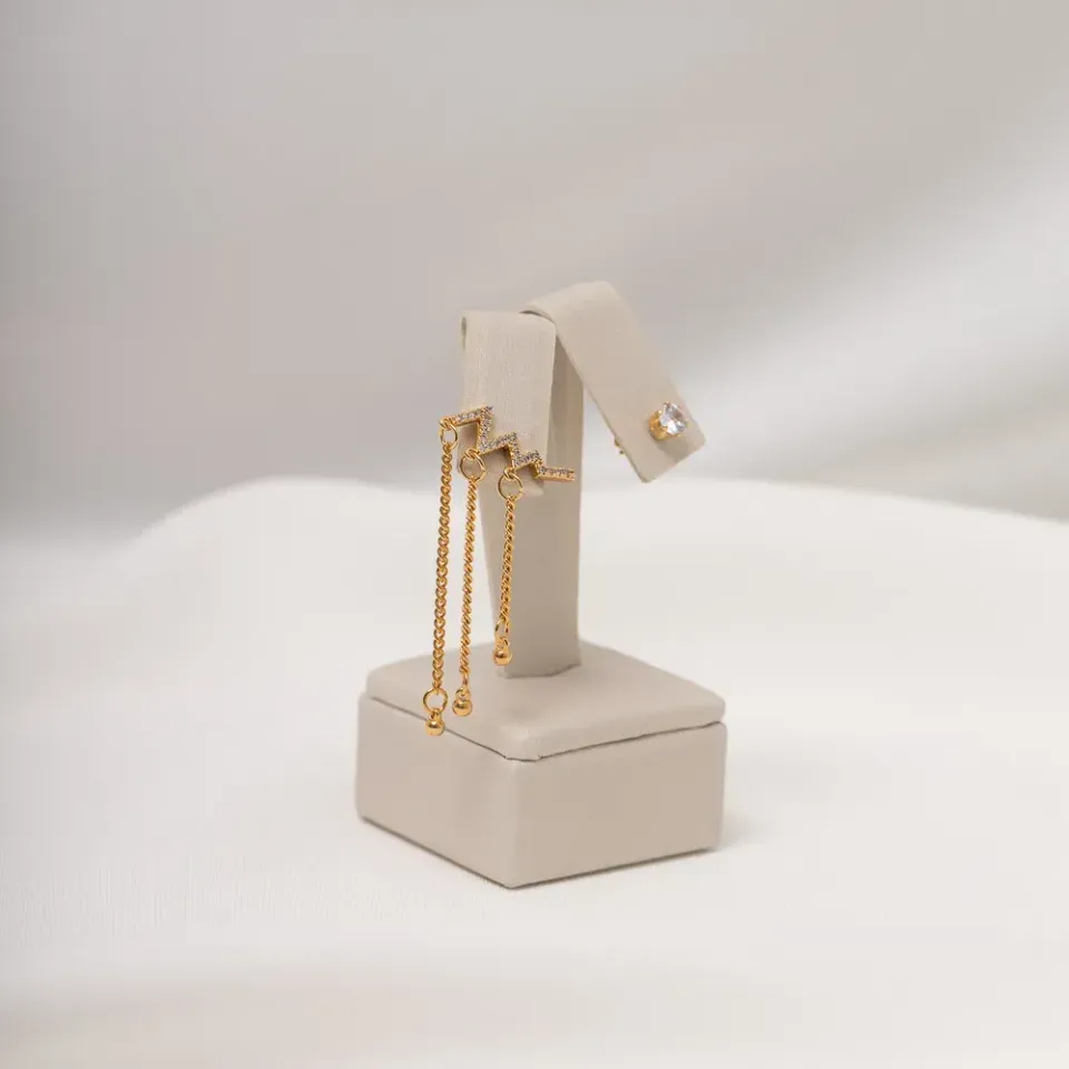BRINCO EAR CUFF RAIO COM CORRENTES BANHO OURO 18K
