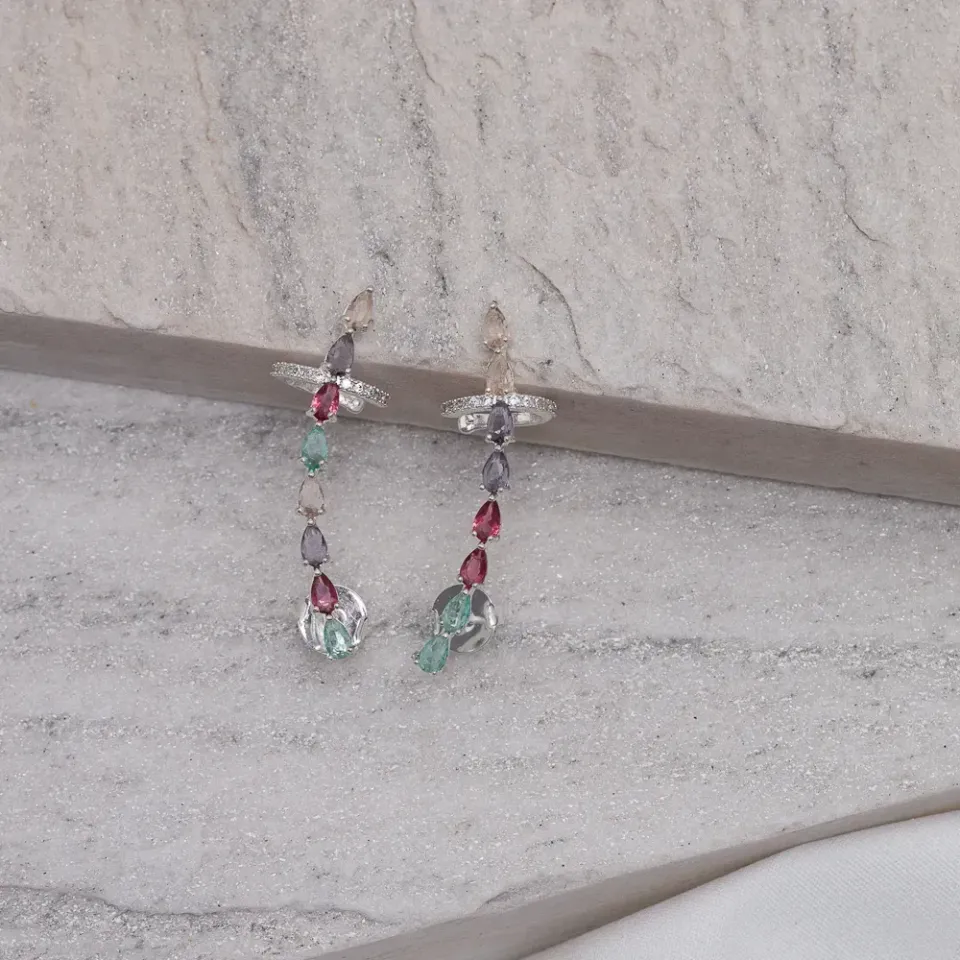 BRINCO EAR CUFF PEDRAS COLORIDAS BANHO PRATA