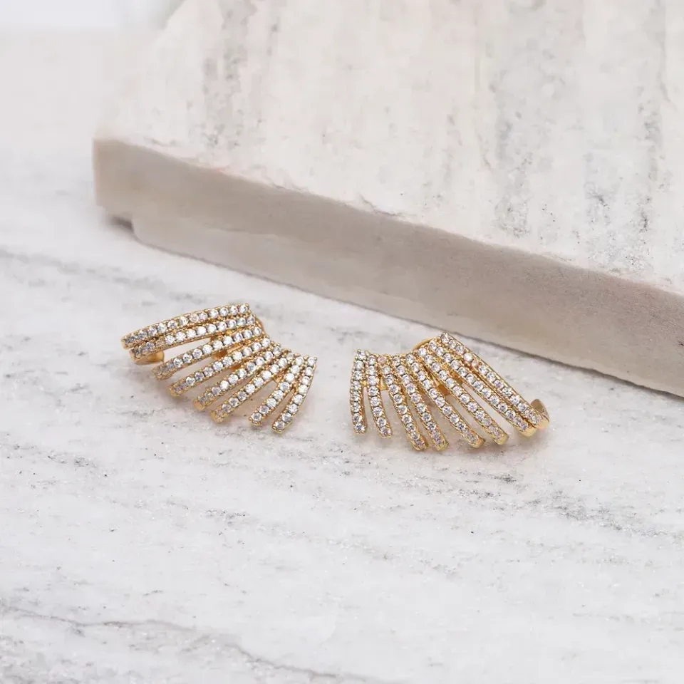 BRINCO EAR CUFF FILEIRAS CRAVEJADAS COM ZIRCÔNIAS CRISTAIS BANHO OURO 18K