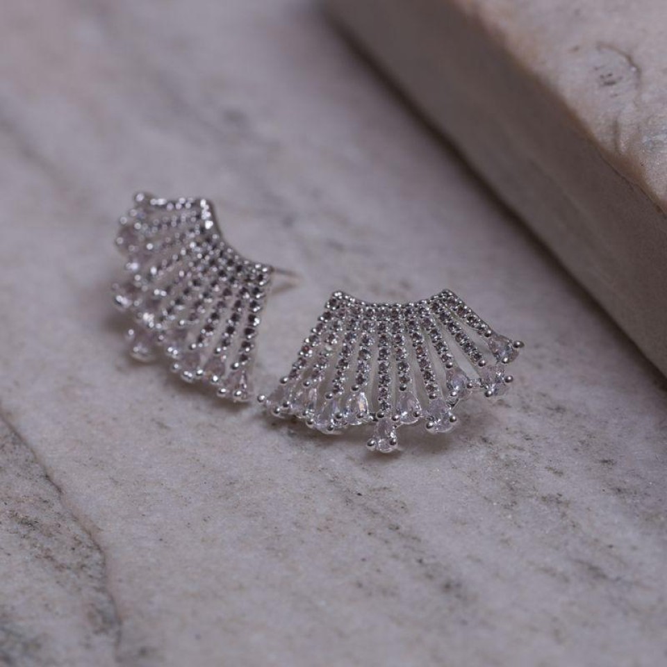 BRINCO EAR CUFF CRAVEJADO COM ZIRCÔNIAS CRISTAIS BANHO PRATA