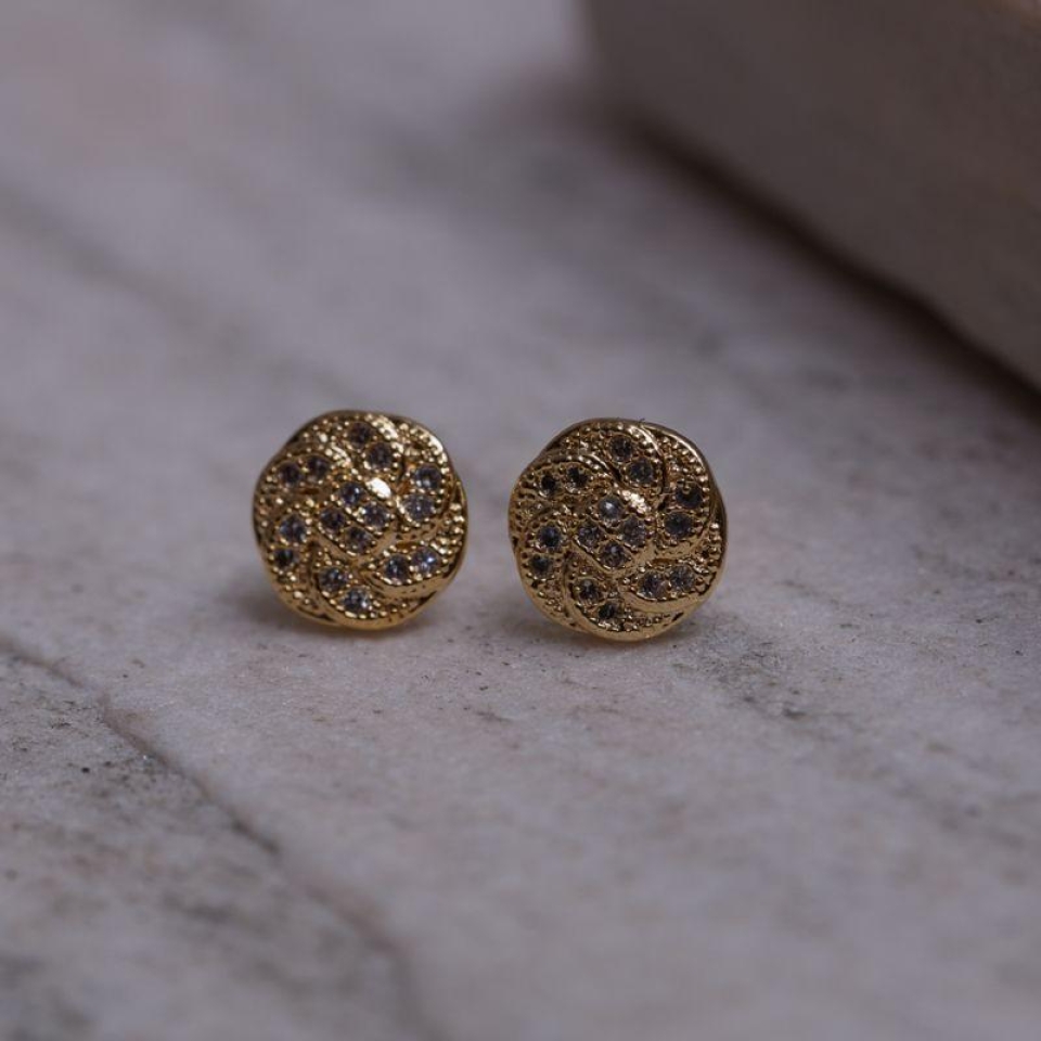 BRINCO ESPIRAL PEQUENO CRAVEJADO BANHO OURO 18K