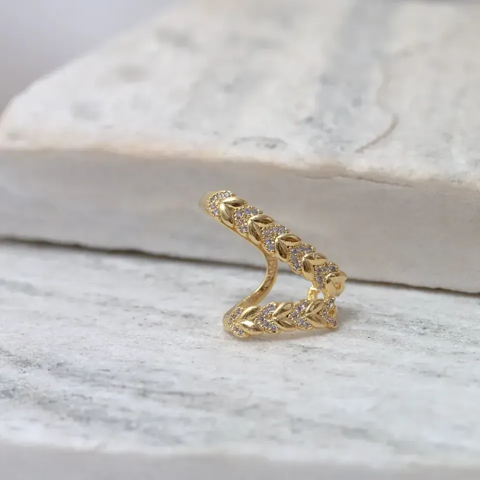 BRINCO FAKE FOLHAS COM ZIRCÔNIAS BANHO OURO 18K