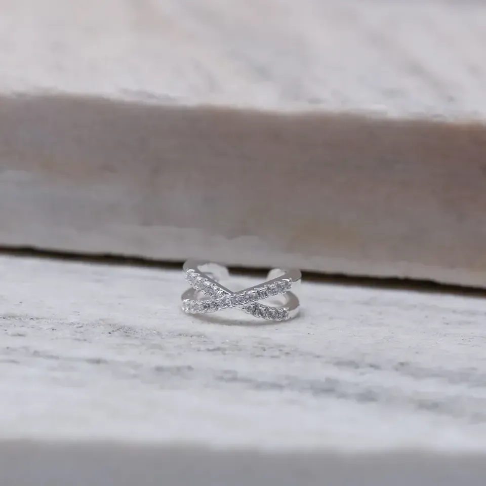 Brinco Fake X Cravejado em banho Prata