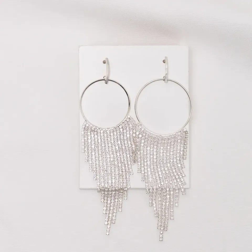 BRINCO FESTA FRANJA COM ZIRCÔNIAS CRISTAIS GRANDE BANHO PRATA