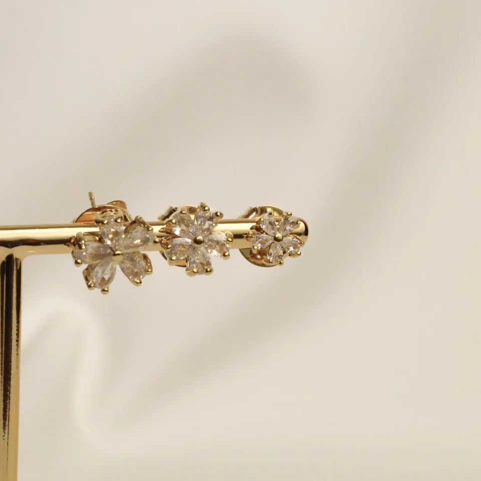 BRINCO FLOR CRISTAL TRIO P BANHO OURO 18K