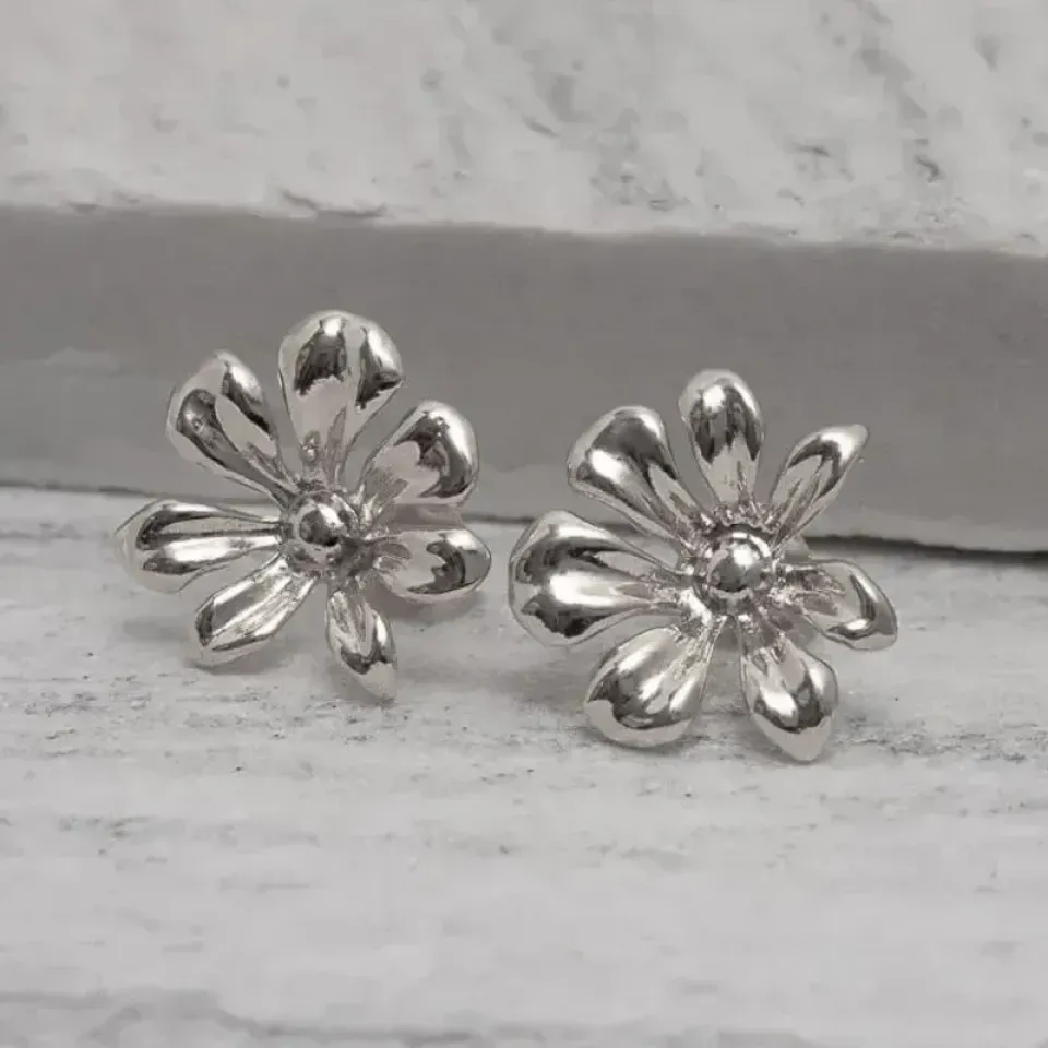 Brinco Flor Lisa em banho Prata
