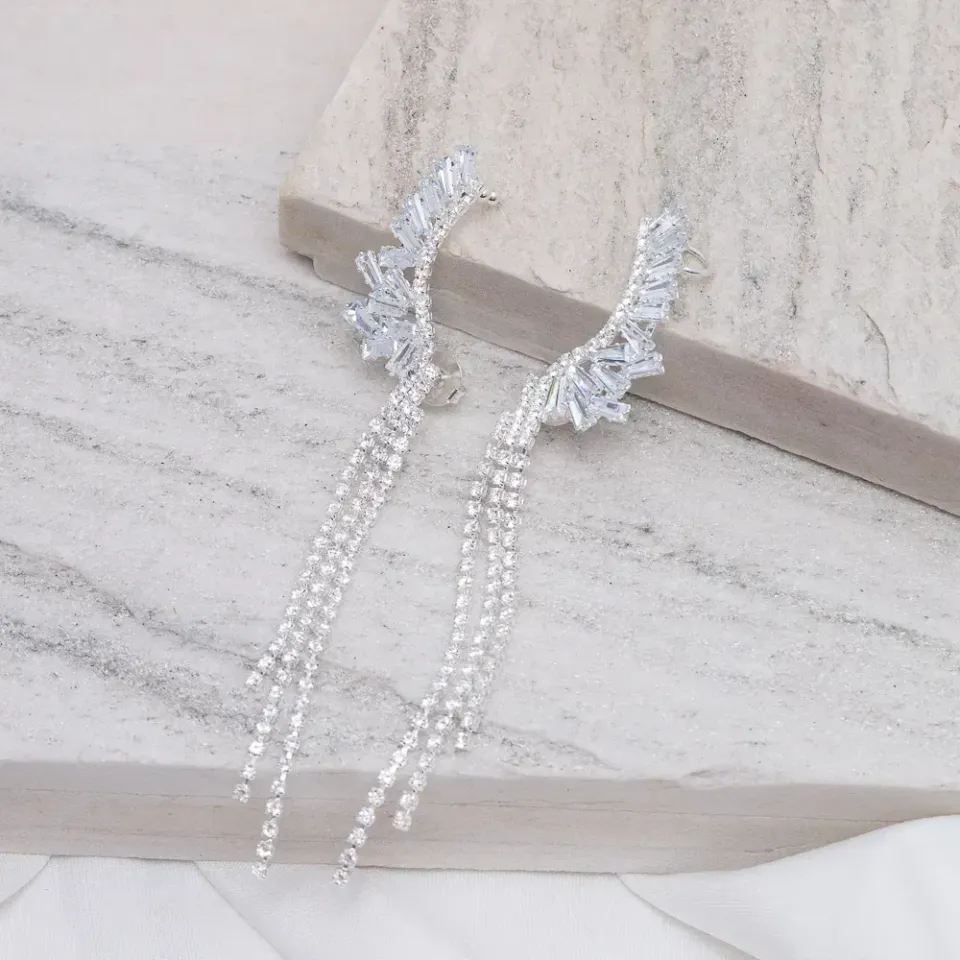 BRINCO FESTA FRANJA CRAVEJADA COM ZIRCÔNIAS CRISTAIS BANHO PRATA