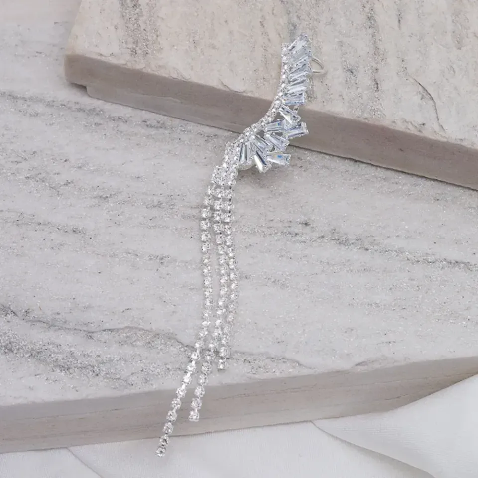 BRINCO EAR CUFF FESTA FRANJA COM ZIRCÔNIAS BANHO PRATA
